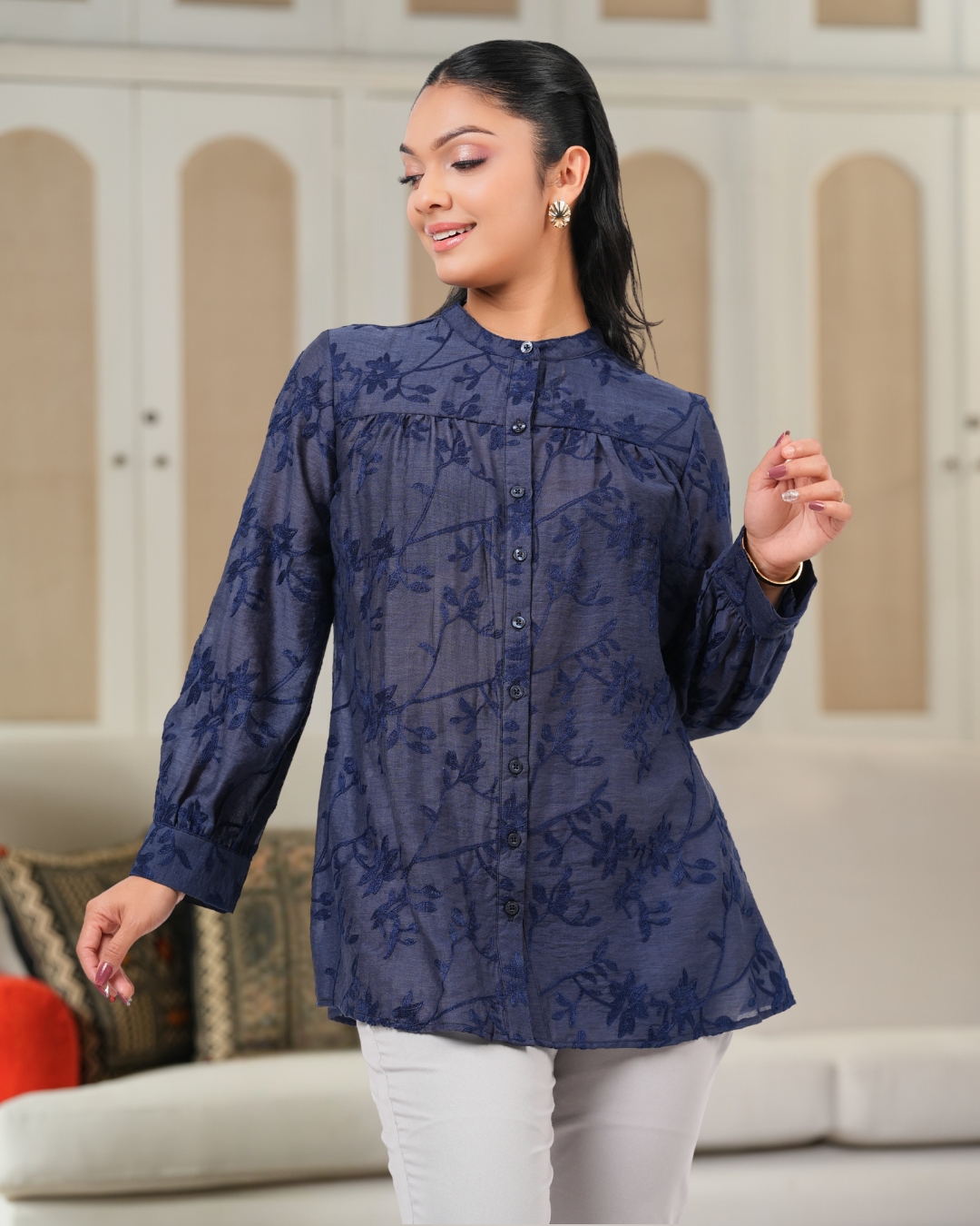 - Crafted from Embroidered Tencel Fabric