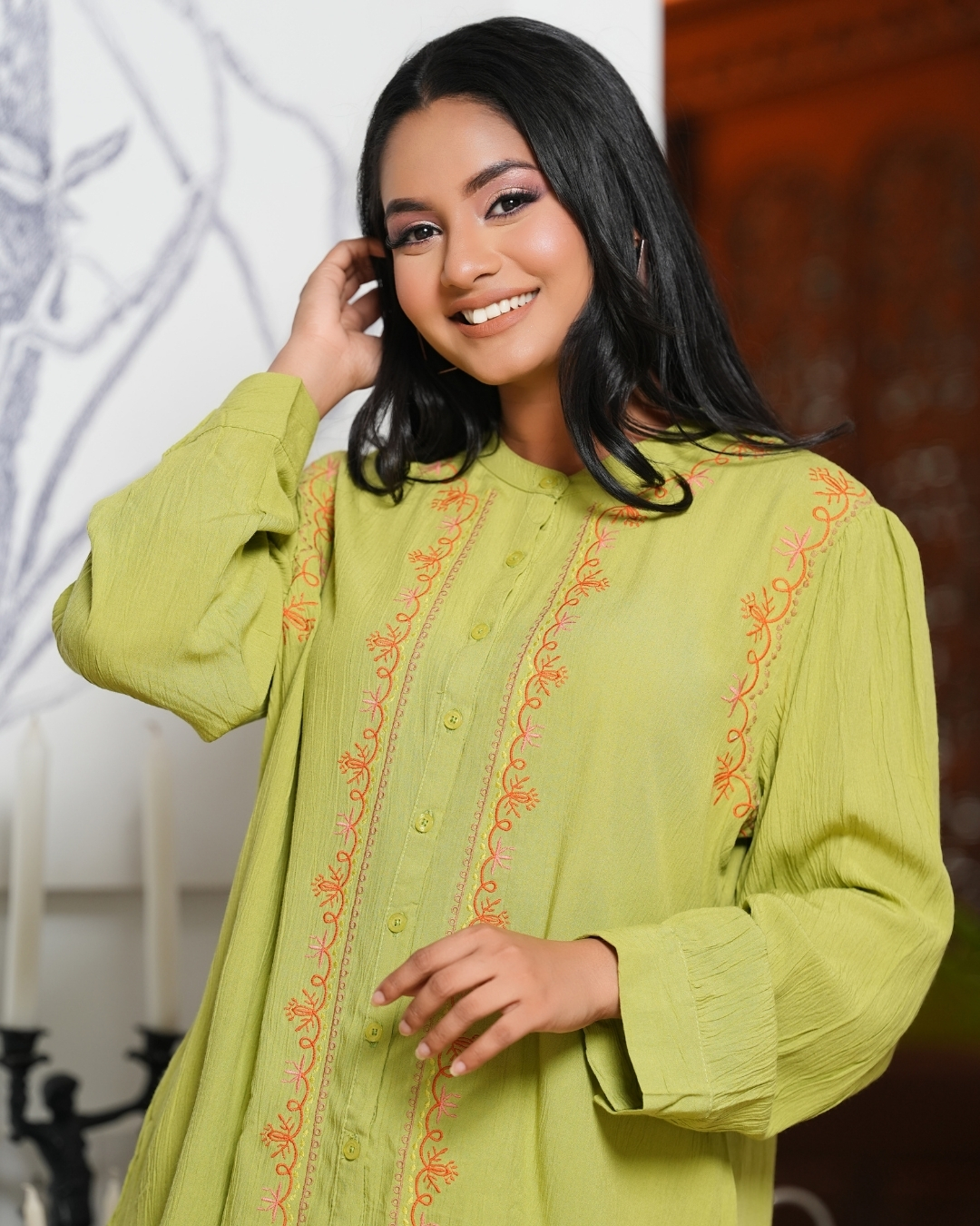 - Chinese Collar with Embroidery Detail
